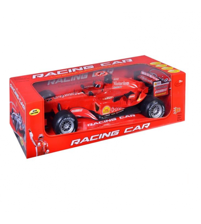 Vehicul jucarie pentru baiat, F1 1:10, cu mecanism friction. Impingeti masina in spate si priviti cum se deplaseaza, de culoare rosie.