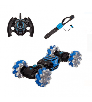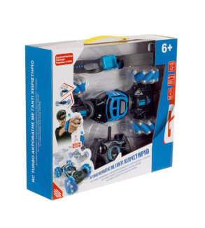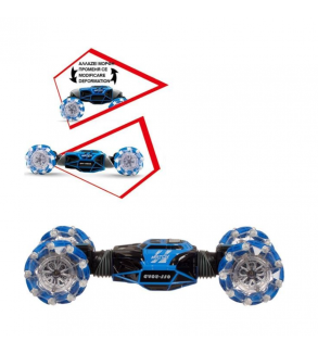 Vehicul cu telecomanda 2.4GHz pentru baieti, turbo acrobat cu motor puternic si amortizor independent pentru viraje deschise. Putere durabila, isi poate schimba forma si are capacitatea de cascadorie, functie completa, lumini si sunete. Dispune de o telecomanda cu manusa, cu o distanta maxima de acoperire de 40-50m si o viteza maxima de 7 km/h. Timp de functionare 20 de minute. Functioneaza cu 1 baterie de tip 7,4V 600MAh pentru vehicul (inclusa), 1 baterie de tip 3,7V 150MAh pentru ceas (inclusa) si 2 baterii de tip AA pentru telecomanda (neincluse).
