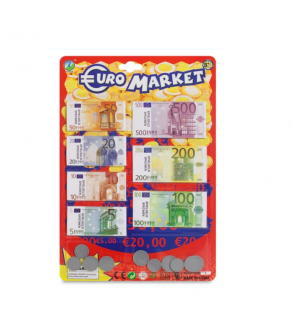 *ATENTIE! Nu este potrivit pentru copii sub 3 ani, piese mici - pericol de sufocare.Jocul are 7 bancnote de 100 €, 200 € și 500 €, din 10 bancnote de 50 €,