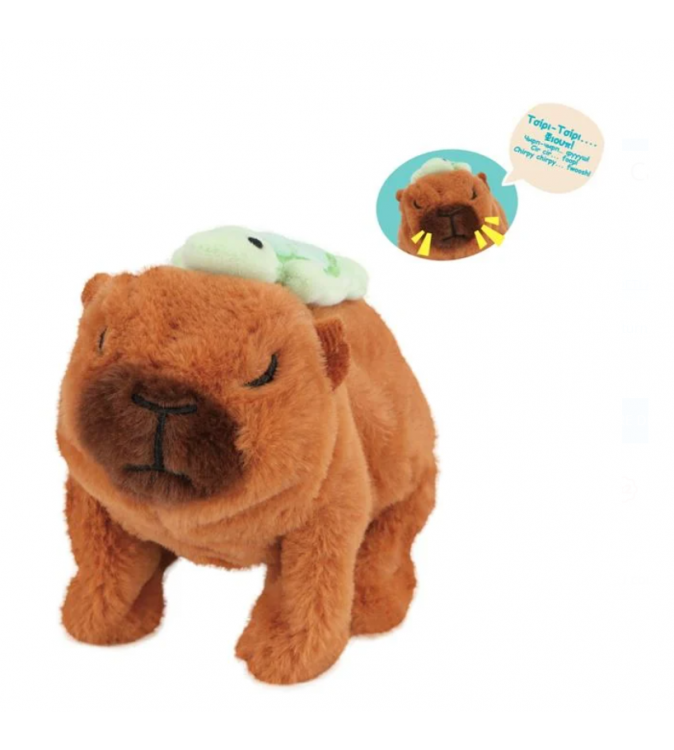 Jucarie Capybara interactiva de culoare maro, care, odata ce este pornita, topaie si fluiera.