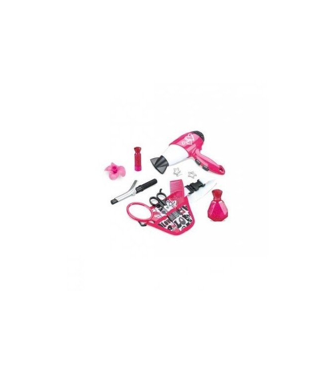 Set de coafor ce include curea de coafura pentru foarfece, pieptene si oglinda. Setul include si accesorii, sticla de parfum, ondulator si uscator de par.