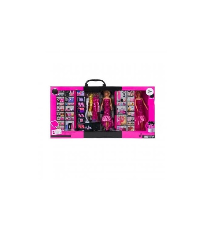 Dulap garderoba cu 2 papusi, 4 rochii, 4 perechi de pantofi, genti si bijuterii, 30 cm, +3 ani