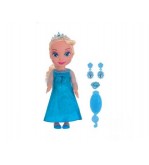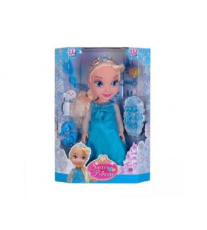 Papusa printesa de zapada cu rochie si pantofi turcoaz, coroana, bijuterii si perie de par.