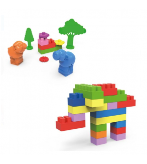 Set cuburi cu 51 de piese pentru a construi o gradina zoologica cu elefant cu sunet, girafa, iepure si altele, contine si o barca cu peste. Ajuta la dezvoltarea fanteziei si creativitatii copiilor in timp ce dezvolta alte abilitati. Functioneaza cu 3 baterii AG13 (incluse).