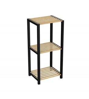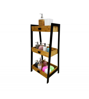 Etajera din lemn MDF, cu 3 rafturi 35x29cm. Cadrul este de culoare neagra, iar rafturile de culoare naturala. Este ideala pentru baie, bucatarie, living, sufragerie, dormitor sau birou.