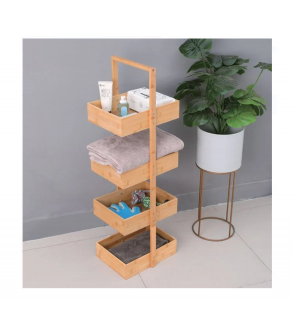 Etajera cu 4 rafturi cu cadru din bambus de 32x24x8cm si maner in partea de sus.