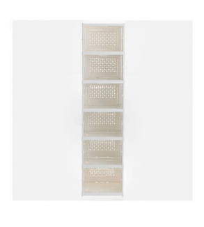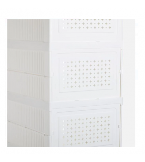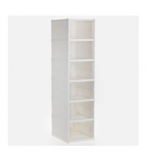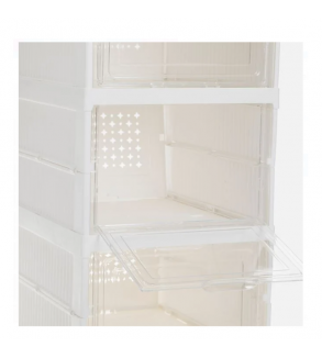 Pantofar din plastic pliabil cu 6 compartimente. Este usor de asamblat fara unelte, practic datorita designului sau si permite identificarea rapida a pantofilor datorita partii frontale transparente. Fiecare compartiment are dimensiunea de 24x16x34cm, iar capacul transparent se deschide in jos.