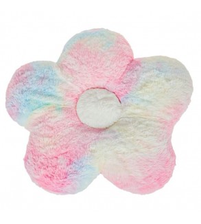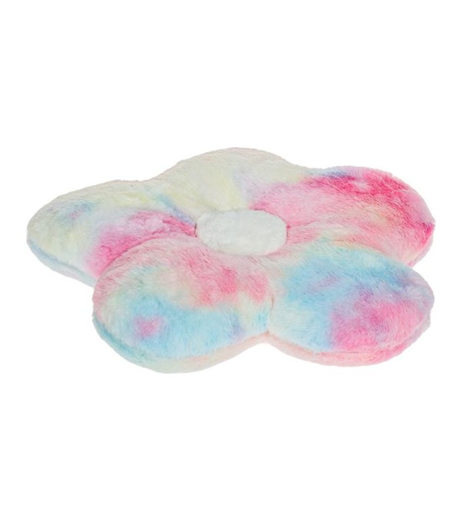 Perna decorativa cu doua fete, in forma de floare cu petale pufoase multicolore tie dye.