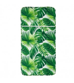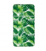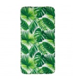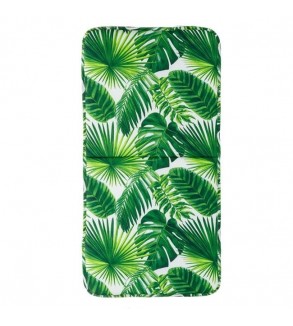 Perna decorativa pentru scaun cu spatar, de exterior, alba cu model frunze verzi tropicale, cu doua fete, fara fermoar, cu elastic pentru fixare si captuseala din spuma.