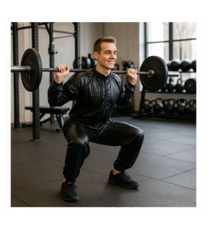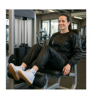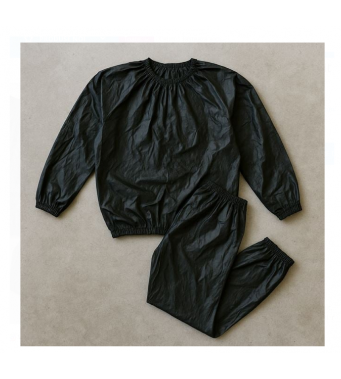 Costum pentru transpiratie sauna suit, va ajuta sa transpirati si sa ardeti calorii in timp ce faceti exercitii fizice purtandu-l. Beti multa apa pentru a ramane hidratati atunci cand purtati costumul.