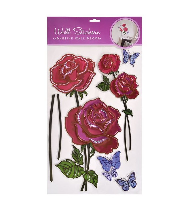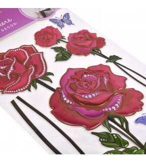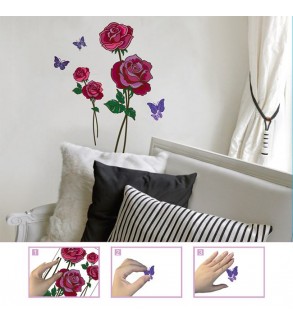 Autocolante de Perete Trandafiri 3D Rosii Mov 32x50cm - 6buc