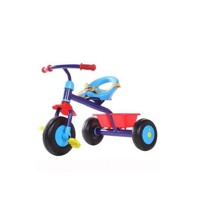 Tricicleta cu cadru metalic, roti mari, pedale usoare cu suport pentru picioare si cos. Cu centura cu fixare in 3 puncte pentru a lega copilul de scaun si un maner detasabil pentru asistenta parentala.