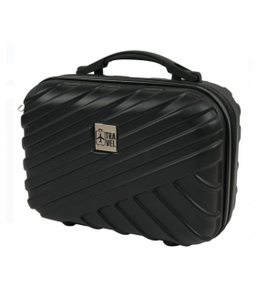 Troller de cabina pentru calatorii, negru, cu un maner si banda elastica in partea din spate pentru fixare pe manerul valizei mari.