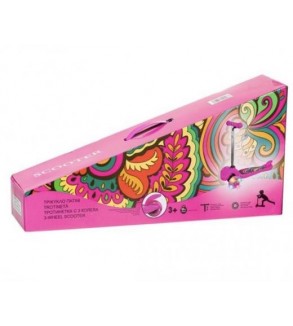 Trotineta scooter din metal cu piese din plastic in culoare fuchsia cu modele.